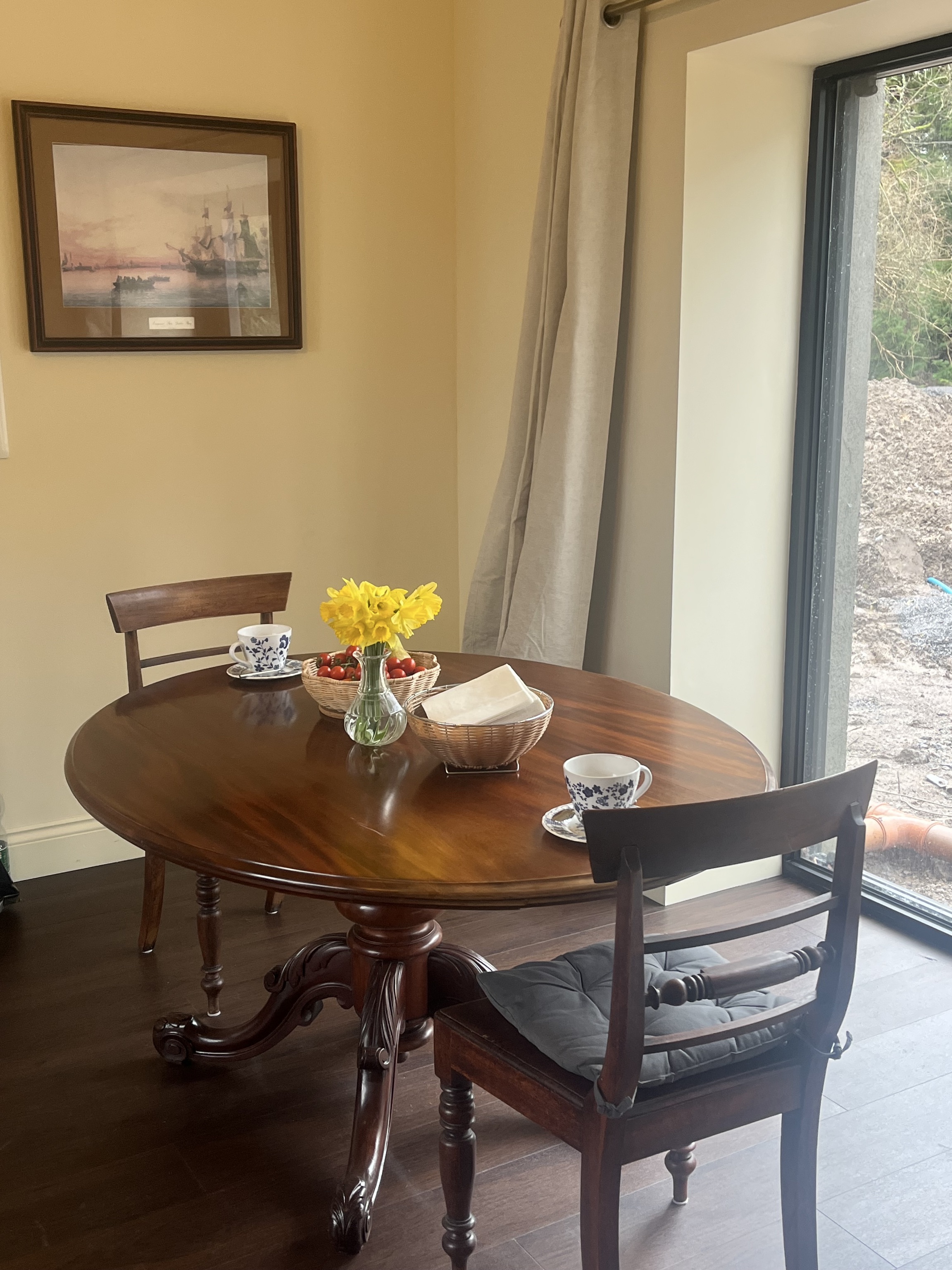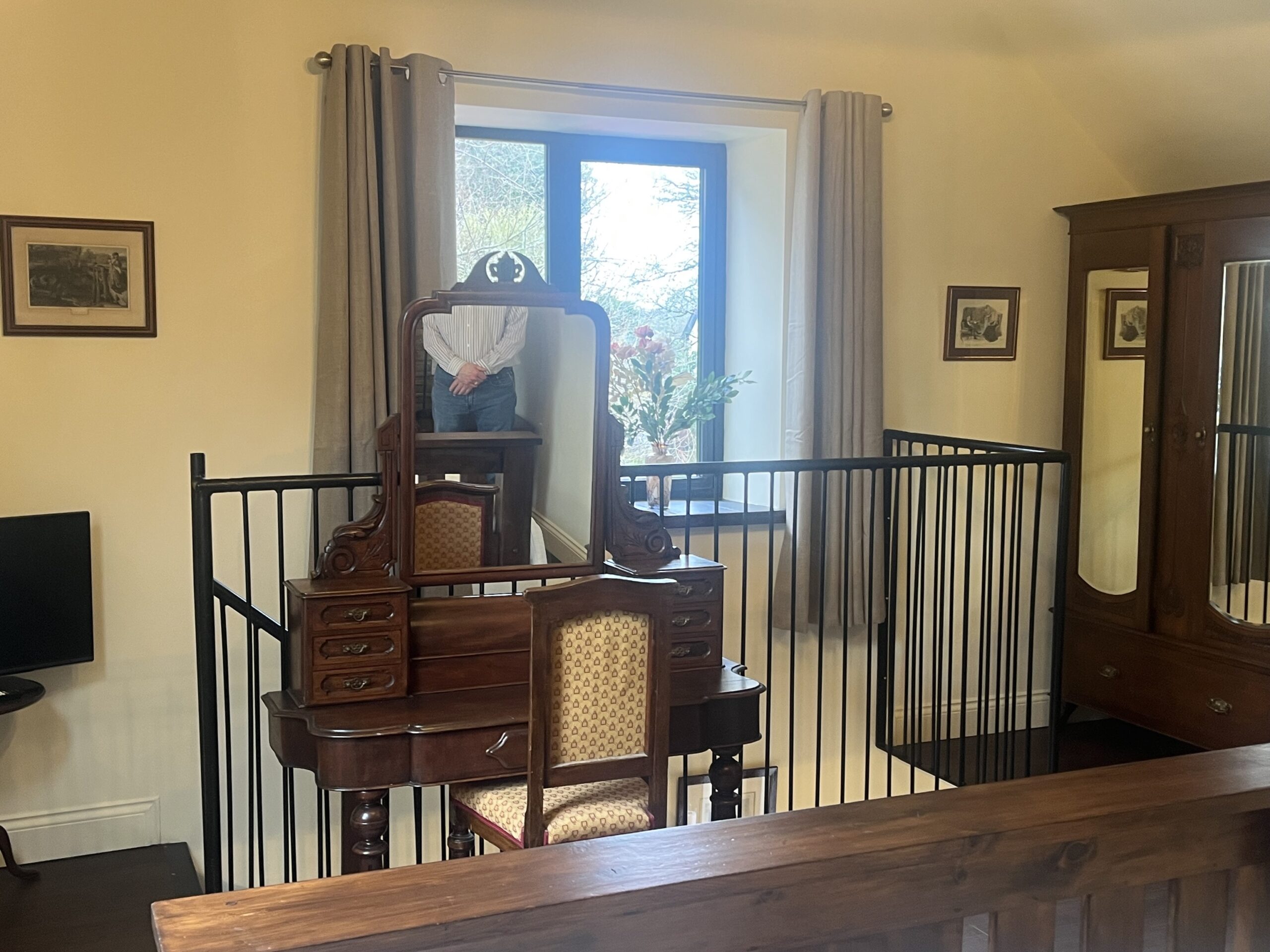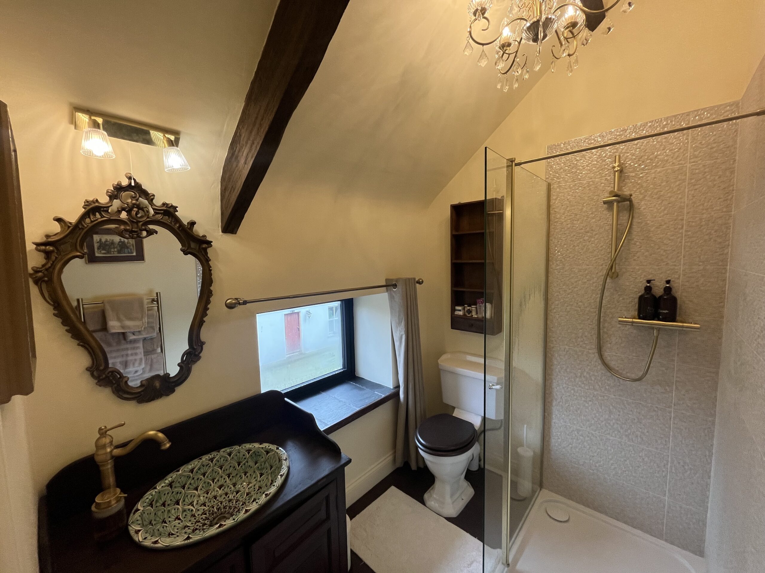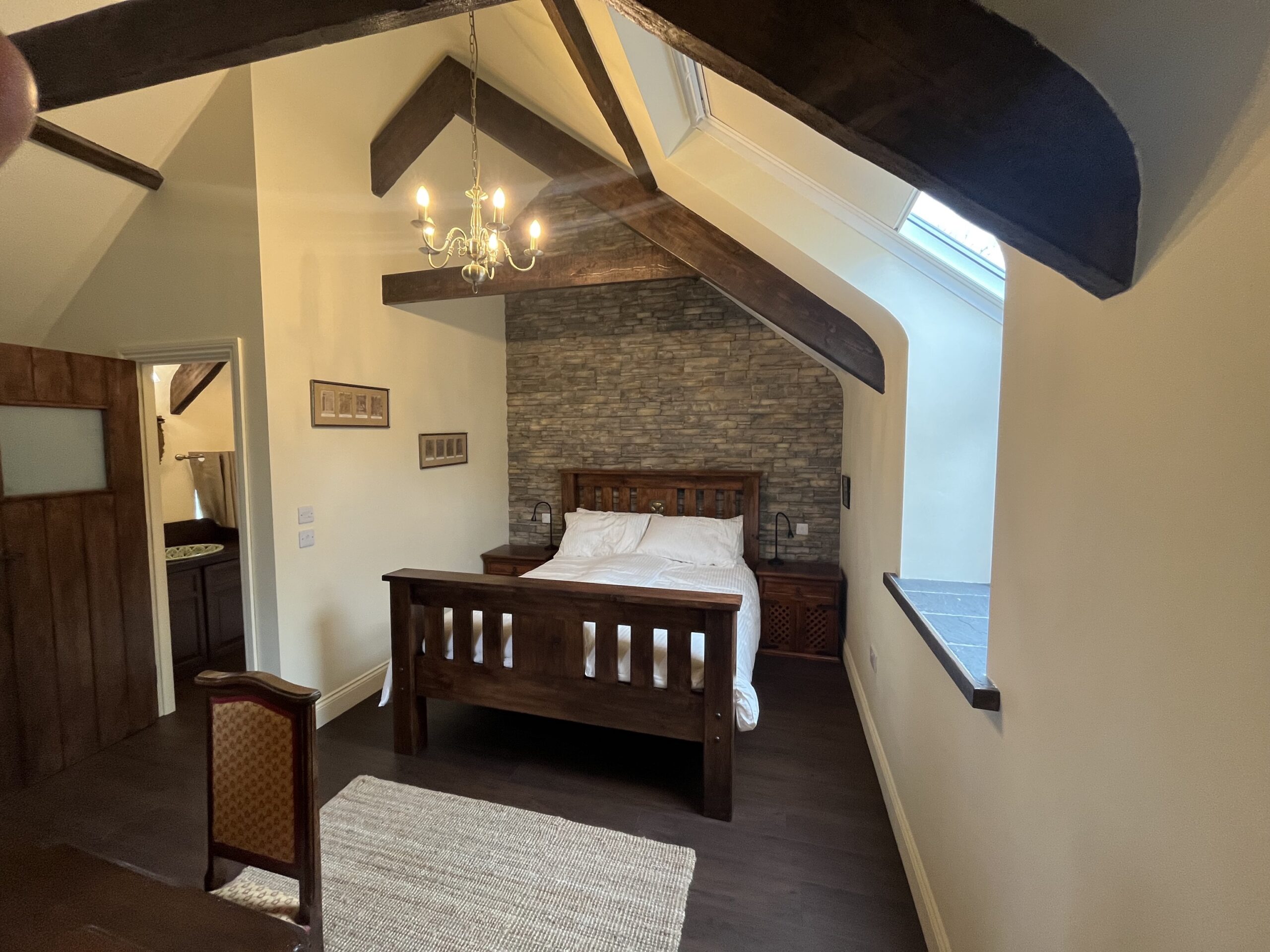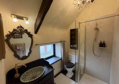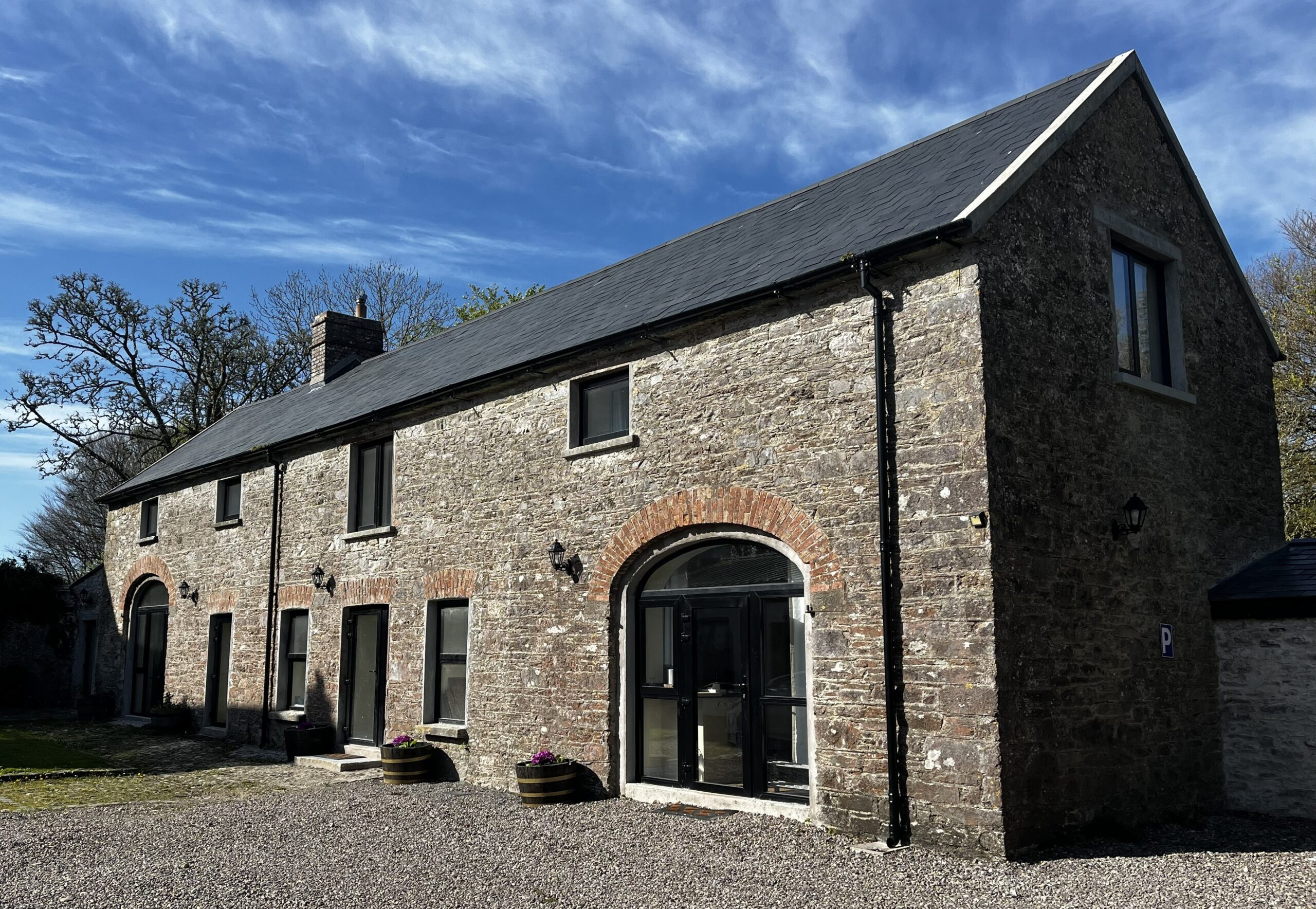 The period coach house has been fully restored and includes self-catering apartments with all the modern amenities. Each unit includes one bedroom and bathroom upstairs with a European King bed, and fully equipped kitchen and living room downstairs (with pull-out sofa bed), with your own private patio and garden.